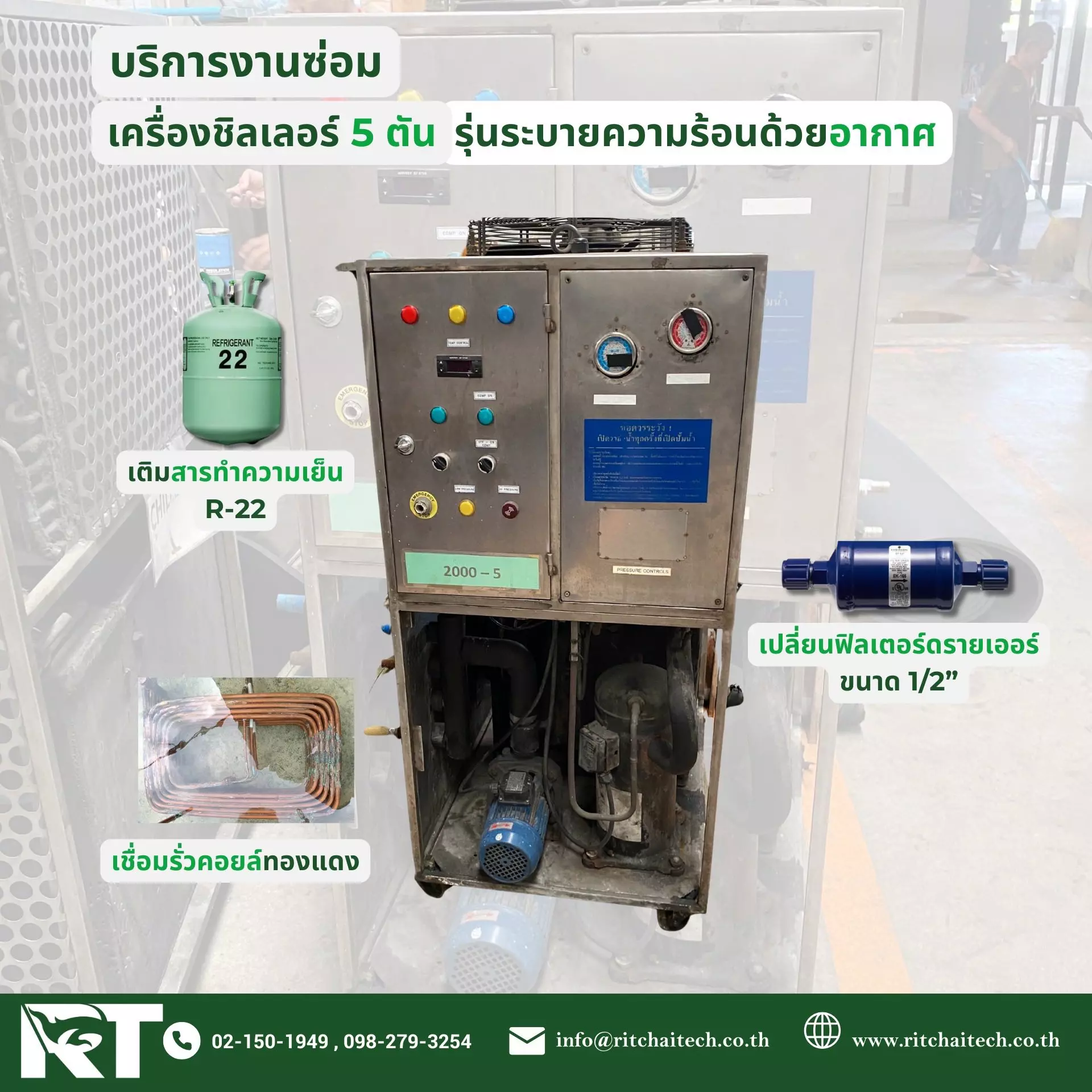 นอกจากงานผลิต เรายังรับซ่อมบำรุงดูแลรักษาชิลเลอร์ ระบบปรับอากาศขนาดเล็กและขนาดใหญ่ แบบครบวงจร