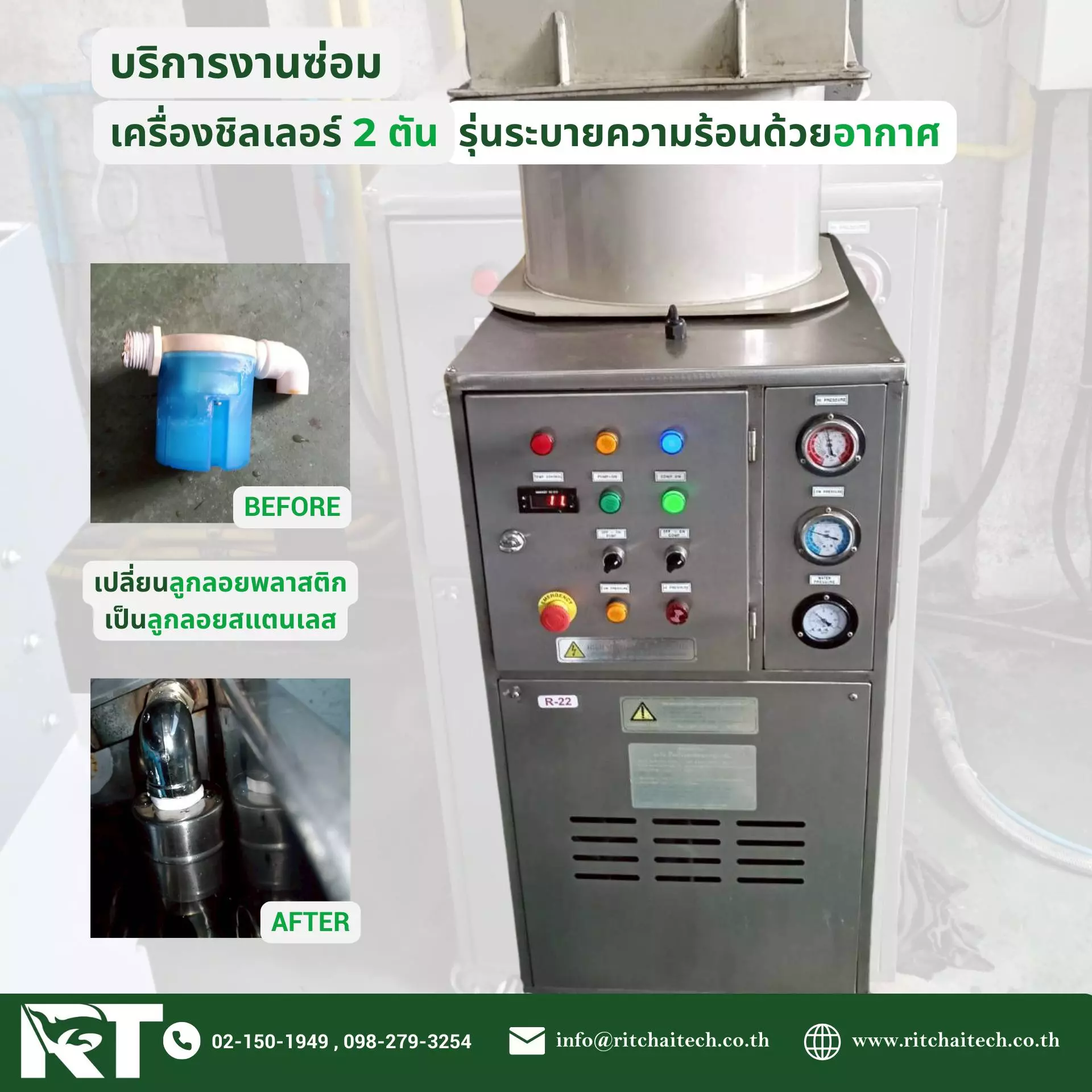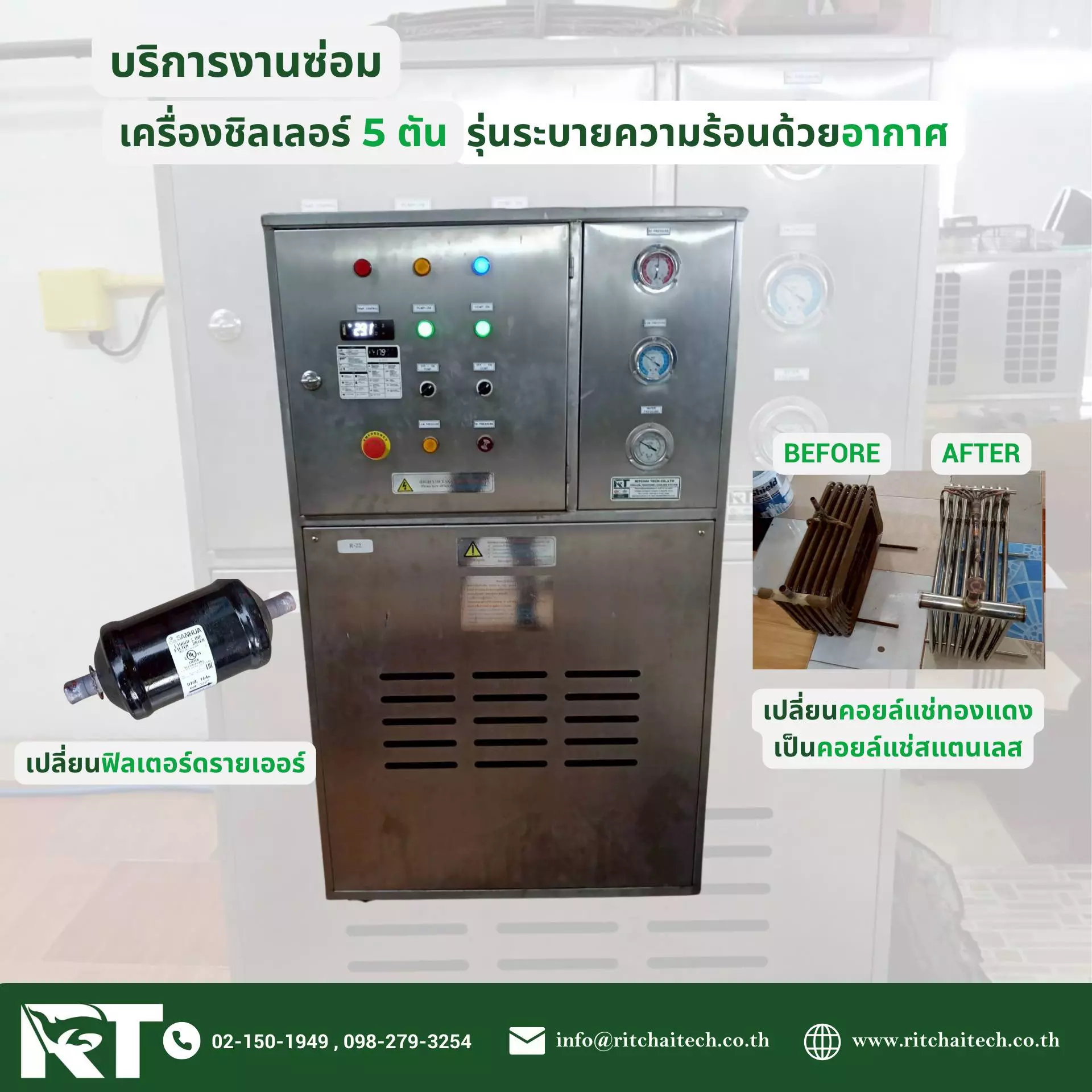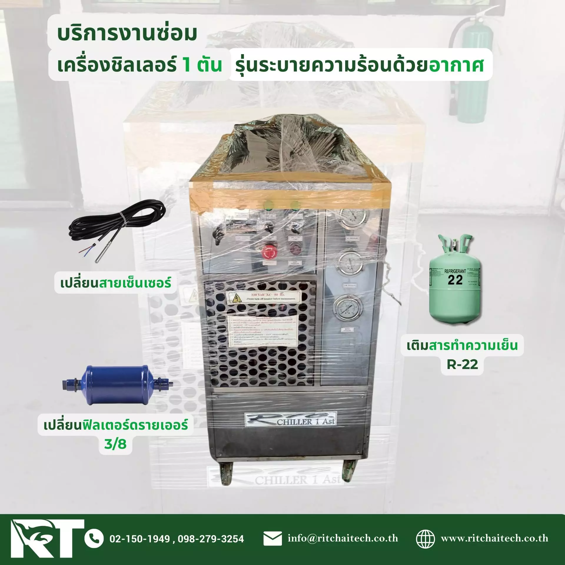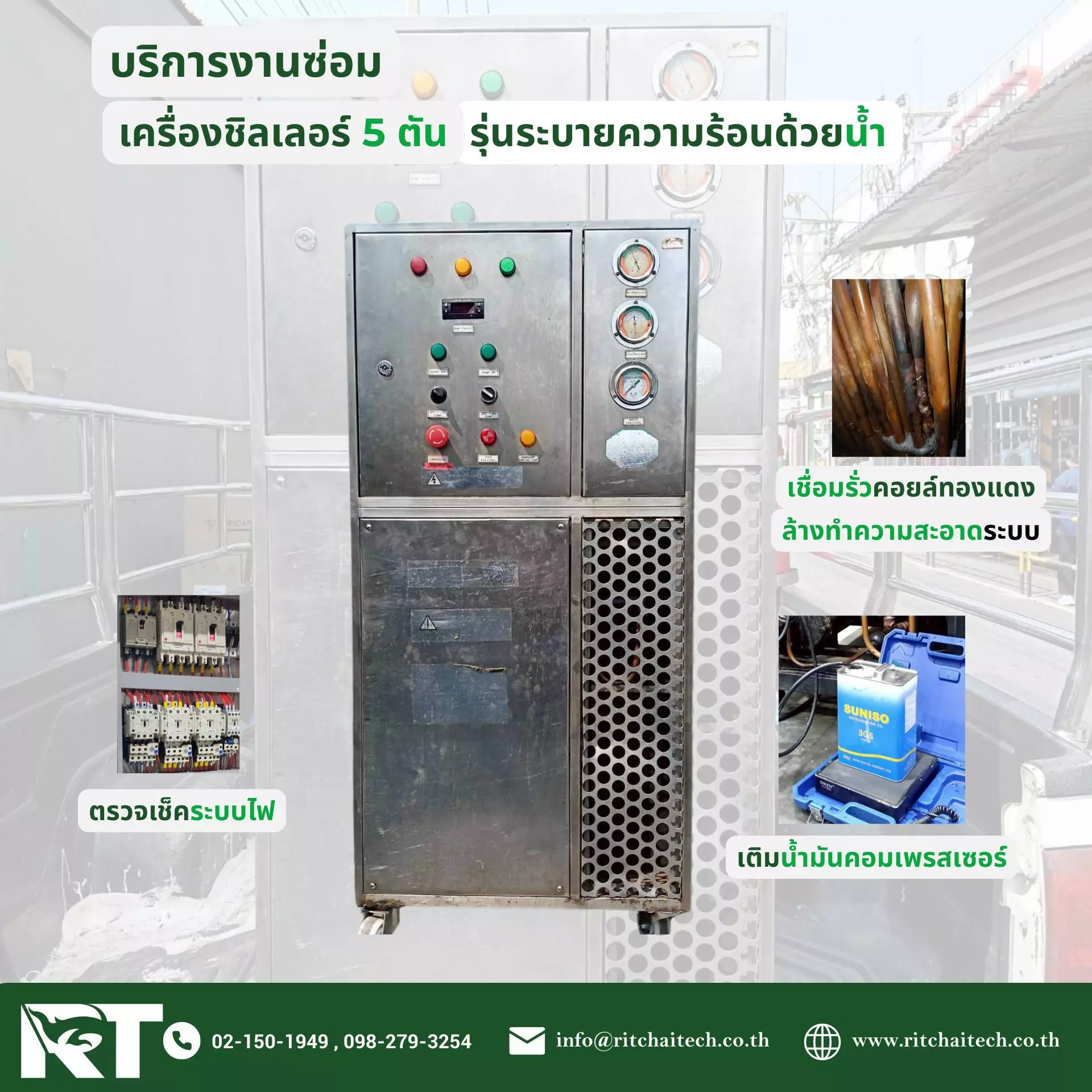 ด้านการผลิต ซ่อมบำรุงรักษาชิลเลอร์และระบบปรับอากาศขนาดเล็กและขนาดใหญ่ แบบครบวงจร